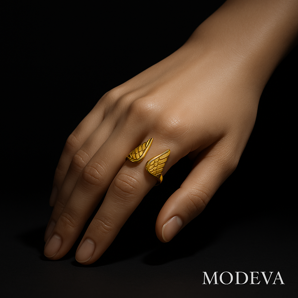 Voeg een vleugje hemelse charme toe aan je look met de Guardian Wings Ring. Het fijn gedetailleerde veerontwerp maakt het meer dan alleen een sieraad – het is een symbool van kracht en bescherming.